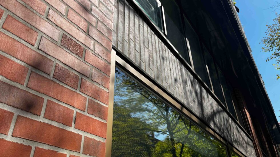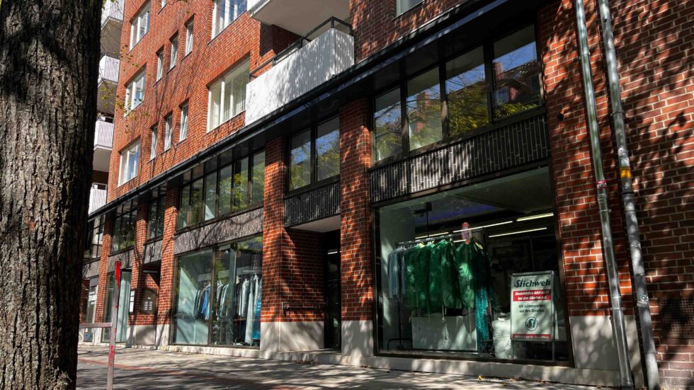 Es wurde geplant, die vorhandene Schaufensteranlage im EG und die Fensterelemente im ZG mit den davor montierten Fassaden-Gitterelementen auszubauen und neu zu gestalten. Die Ausführung der Schaufensterelemente im EG und der Fensterelemente im ZG erfolgte mit einer Alu-Glas-Fassade als Pfosten-Riegel-Konstruktion. In der ZG-Ebene wurden Dreh- bzw. Dreh-Kipp-Elemente angeordnet. Die Flügelprofile wurden in die Pfosten-Riegel-Fassade so integriert, dass sich ein gleichbleibendes äußeres Erscheinungsbild in allen Glasfeldern ergibt. Die Ausführung der Ladeneingangstür zur Reinigung Stichweh erfolgte als zweiflügelige automatische Schiebetüranlage. Die beiden Ladeneingangstüren links des Hauseinganges wurden mit einflügeligen nach außen öffnenden Türelementen ebenfalls mit Panikfunktion ausgeführt. Die Hauseingangstür wurde als verglastes Türblatt mit flügelhohem Edelstahl-Stoßgriff und verglasten Seitenteilen ausgebildet. Im Rahmen der Sanierungsarbeiten wurden auch die Klingel- und Briefkastenanlage erneuert.
